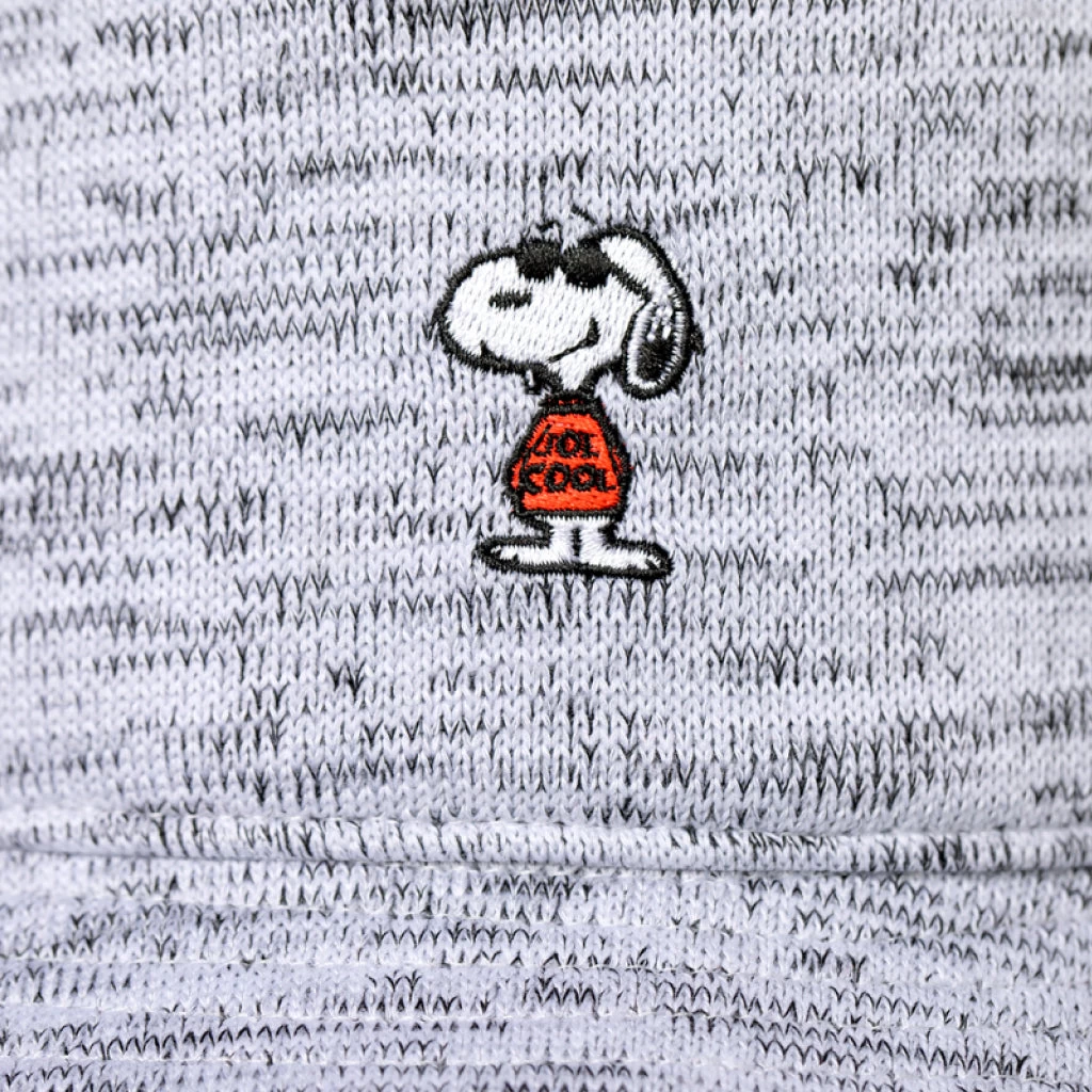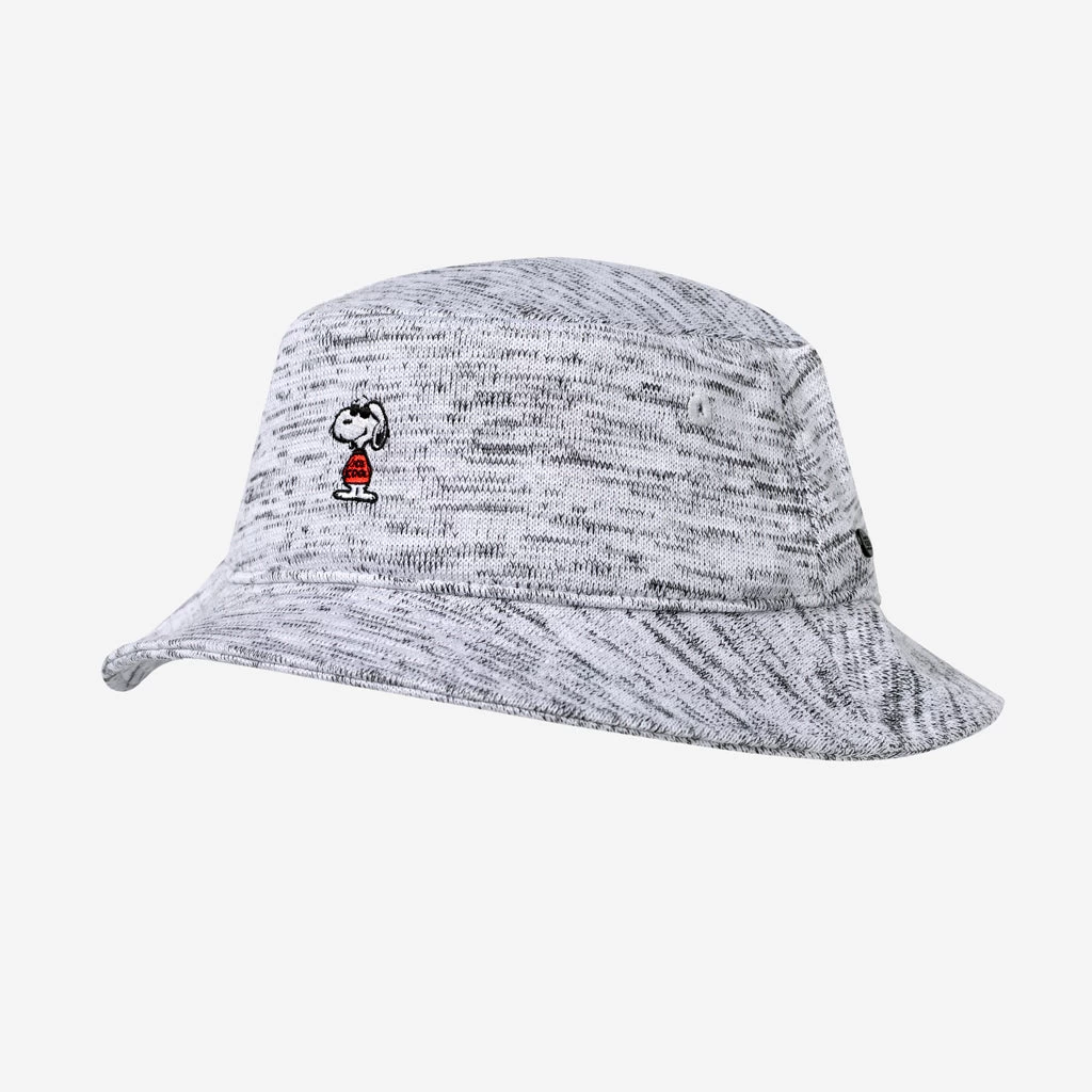 Warm your heart with Peanuts! This Black Speckled Hero Bucket Hat features a nostalgic Snoopy Joe Cool embroidered design on the front and a black LYM branded rivet on the side. Made with temperature-regulating FitKnitâ„¢ fabric, this hat will keep you comfy through all seasons.Â