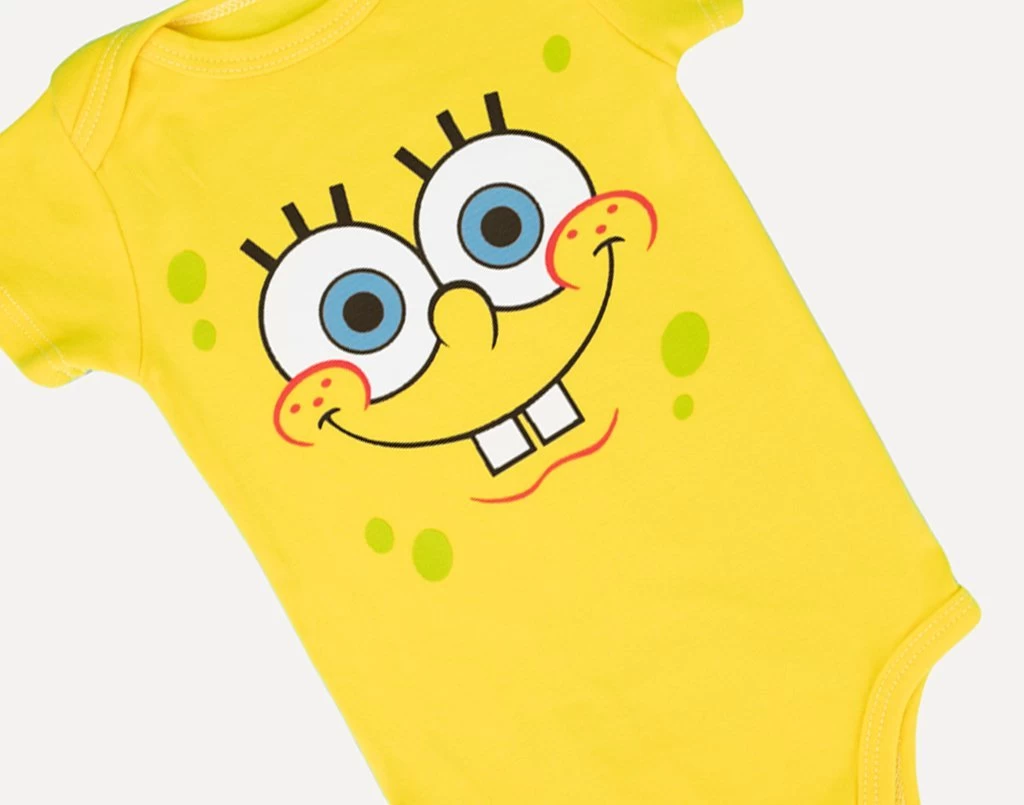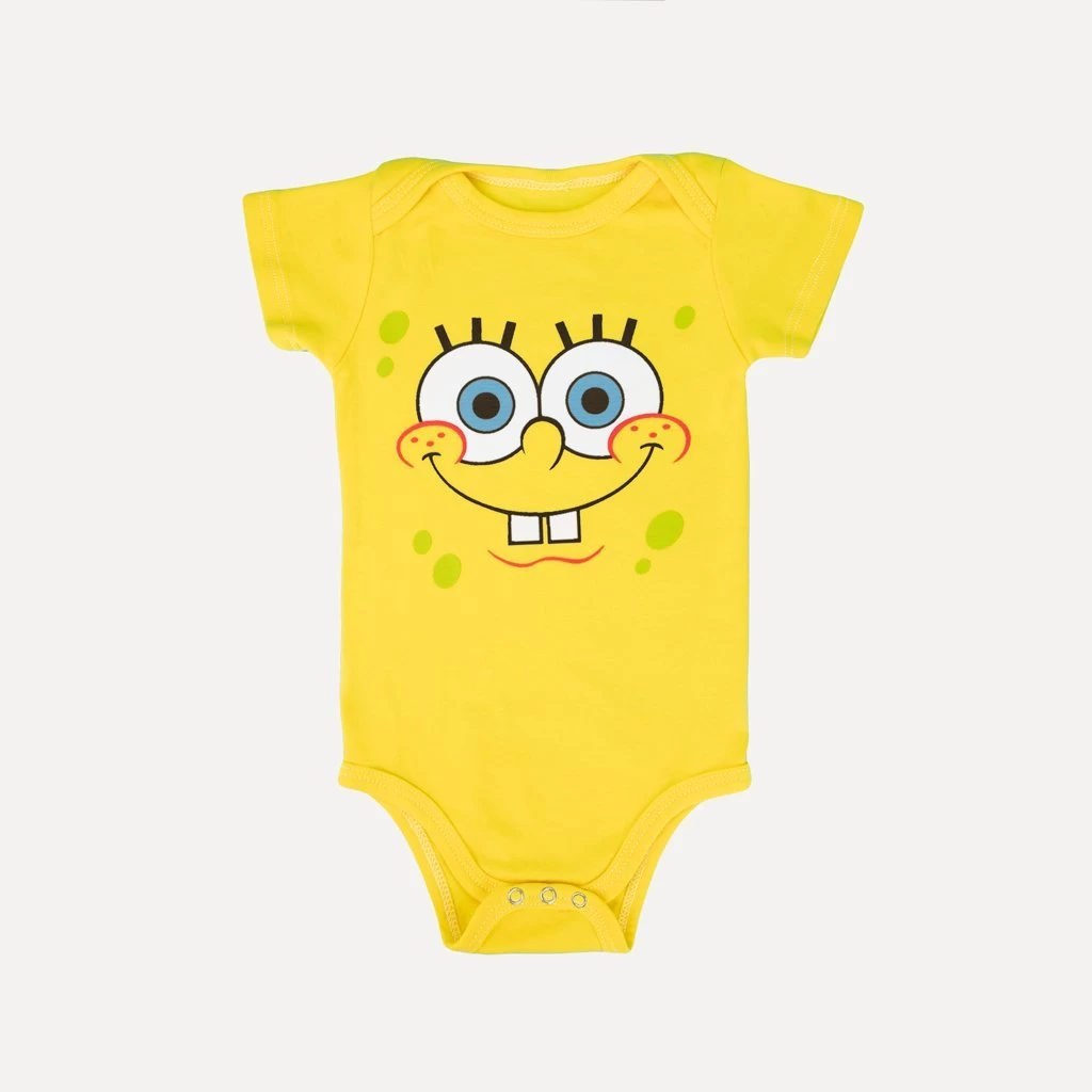 Who is on a onesie and lives under the sea? SpongeBob SquarePants! Celebrate your love for Spongebob Squarepants and Love Your Melon with this super soft baby bodysuit! Made from 100% cotton, this baby onesie features a 3 snap closure, as well as a screened Spongebob on the front and Love Your Melon on the sleeve.This baby bodysuit is perfect for any adventure under the sea!