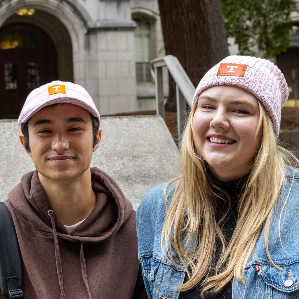 This White and Orange Speckled Beanie features an orange leather patch with the Tennessee Volunteers logo debossed in white foil.
