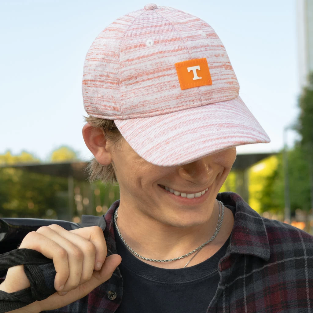 This White and Orange Speckled Hero Cap features a University of Tennessee silicone patch at the front, and a Love Your Melon branded rivet on the back.