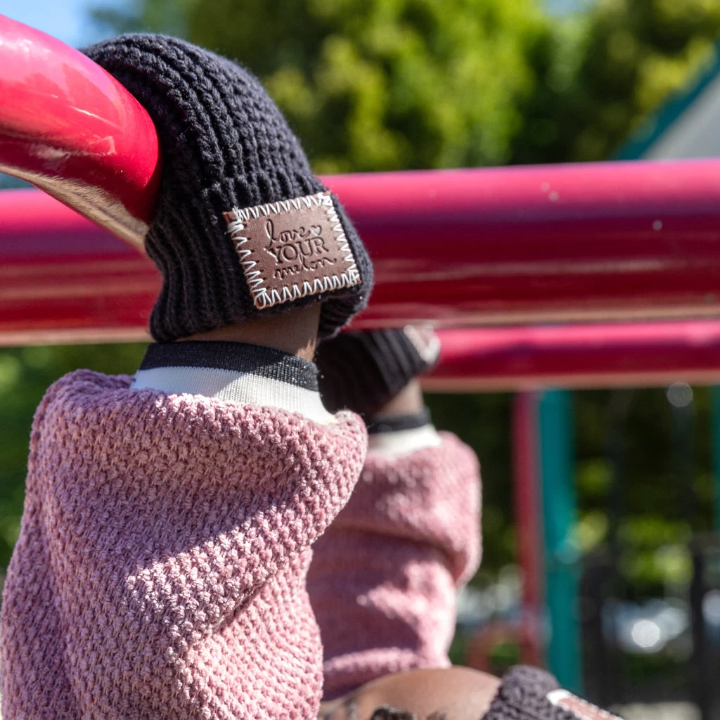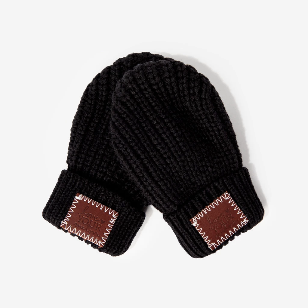 Keep their little hands warm in these Toddler Black Mittens. This ultra-cozy accessory features a red maple leather patch embossed with the LYM logo on each cuff. Made with LoveKnit™ – a double-thick, extra soft knit for unmatched comfort.