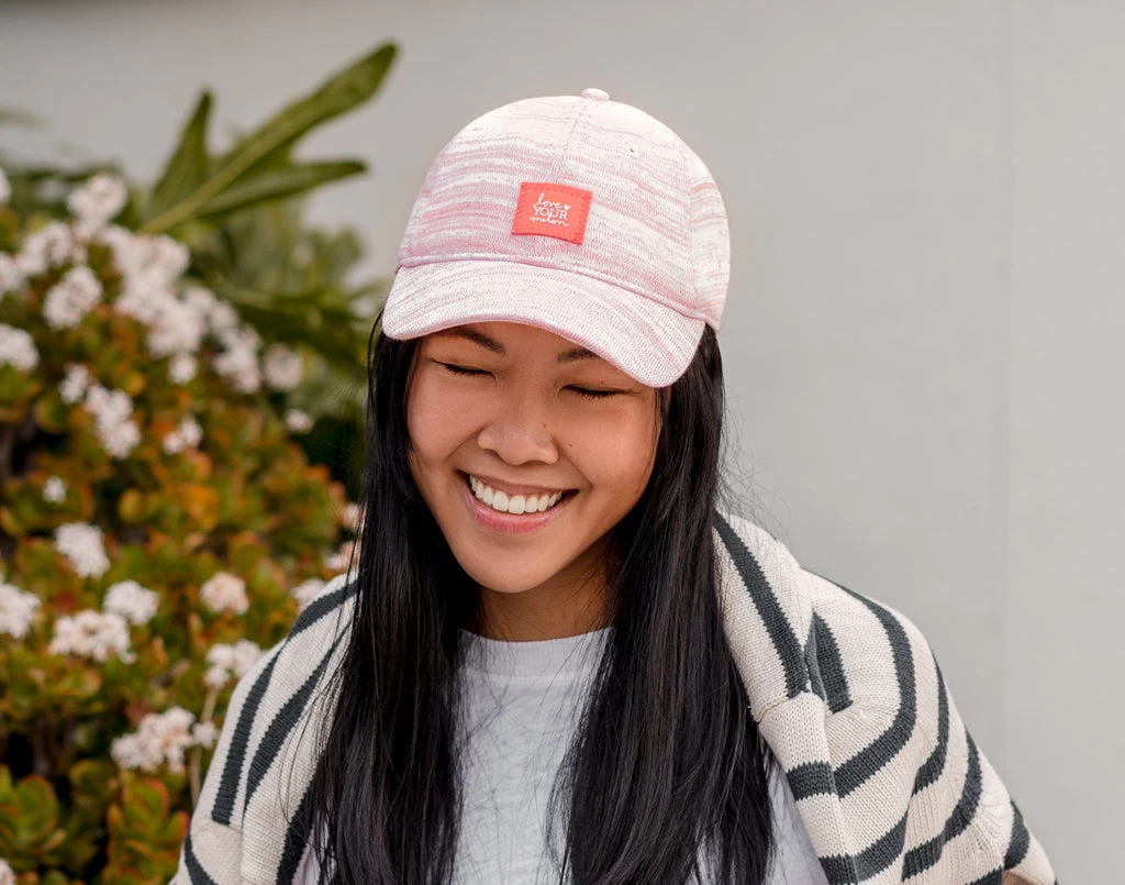 Prepare to feel the perfect fit. Made with FitKnitâ„¢ Technology, The Hero Cap contours to your head for a fit you need to feel to believe. The White and Coral Speckled Hero Cap features a coral silicone patch embossed with the Love Your Melon logo.
